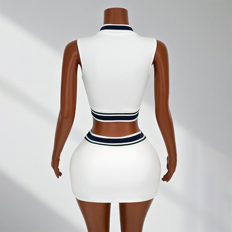 Product Description Stay stylish and confident with this Casual Women’s Fashion Sporty Collar Sleeveless Top with Crop Tie-Waist Mini Skirt Set. Designed for modern comfort and trendy appeal, this two-piece matching set combines a sleek, sporty look with feminine style. The sleeveless sporty-collar crop top creates a c