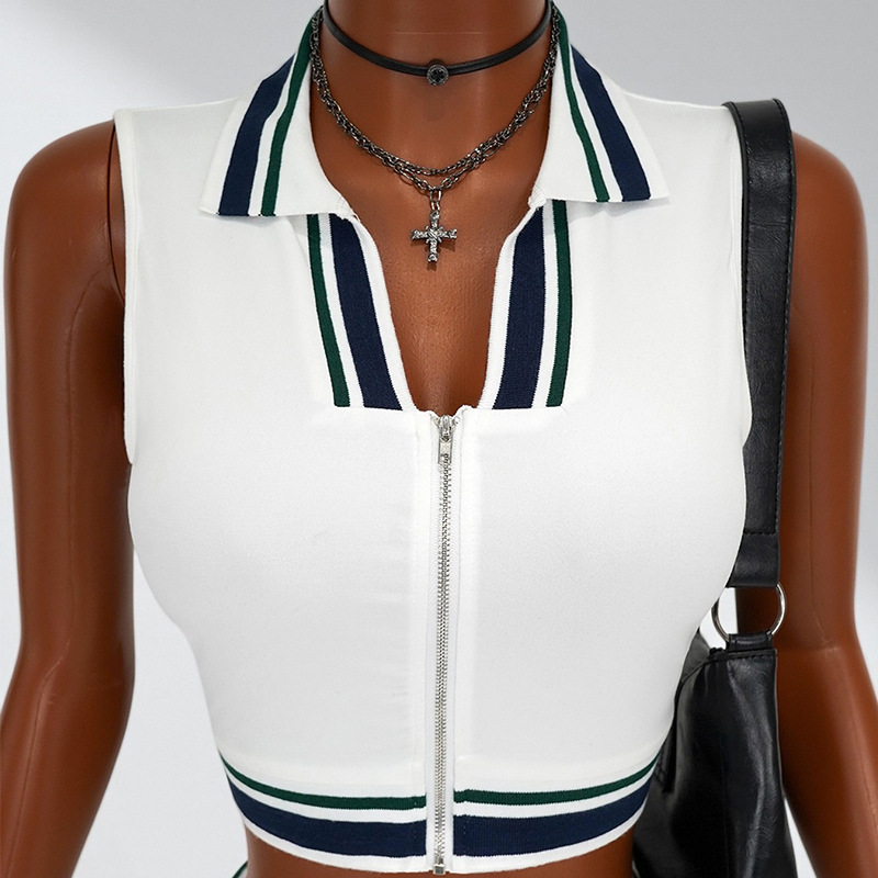 - Stylish sporty collar sleeveless crop top