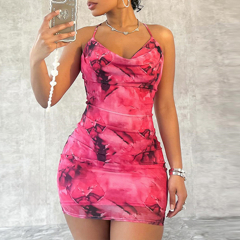 Sexy Printed Cross-Back Fitted Bodycon Dress
