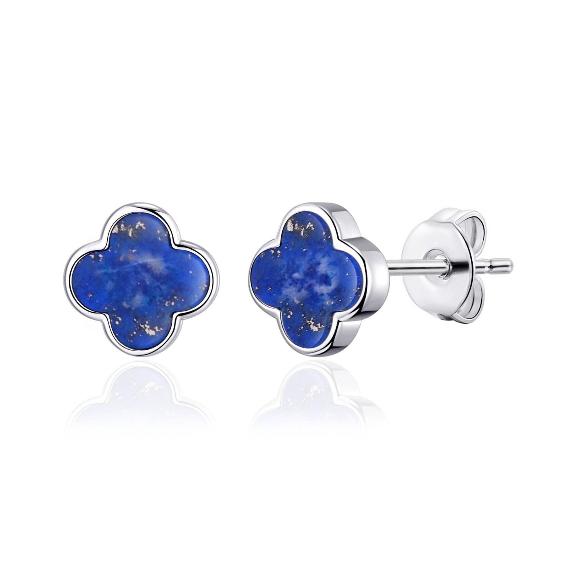 Lapis Gemstone Clover Earrings