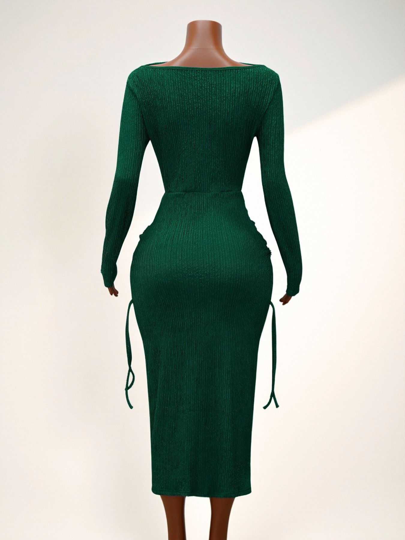 Product Description Refined and effortlessly stylish, this Elegant Women’s high-neck, long-sleeve, fitted, ruched, drawstring bodycon dress is designed to enhance your silhouette with modern sophistication. The high neckline adds a polished touch, while the long sleeves create a sleek and elegant look. The ruched detai