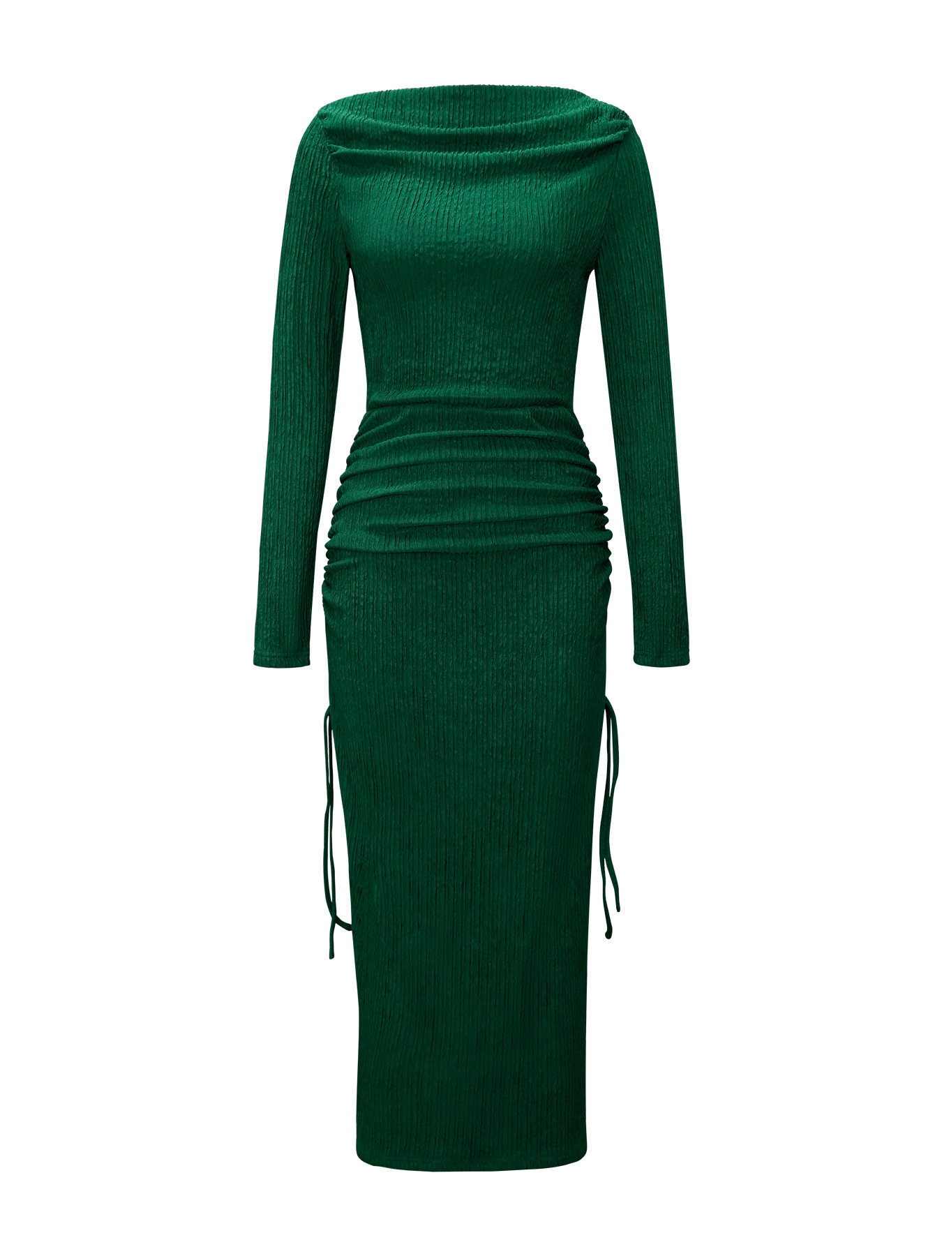 The ruched detailing with adjustable drawstring allows you to customise the length and shape, creating a flattering contour that highlights your curves. The bodycon fit hugs the body beautifully, creating a confident, stylish look.