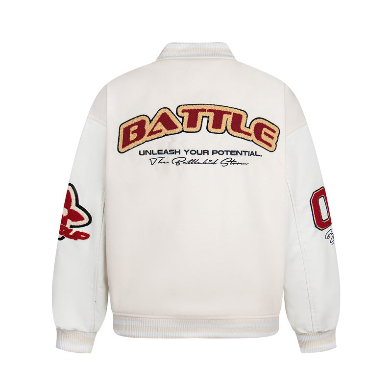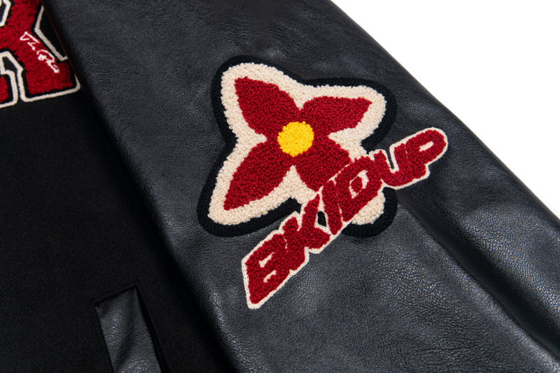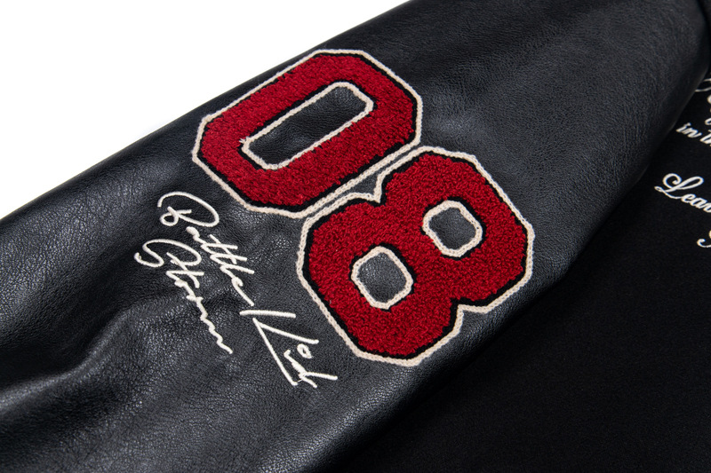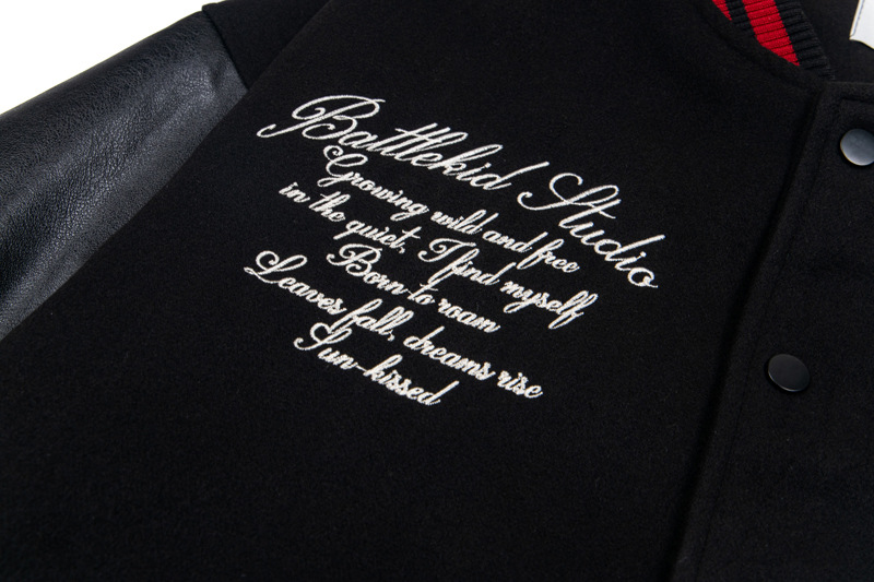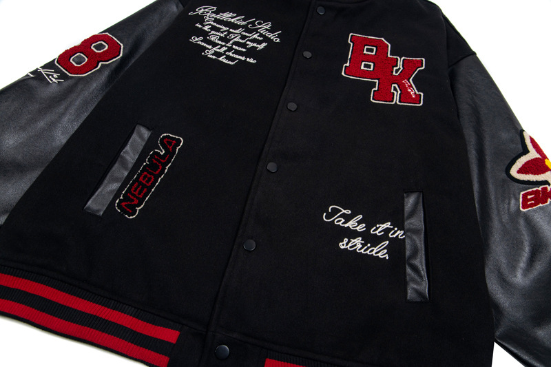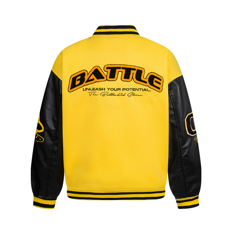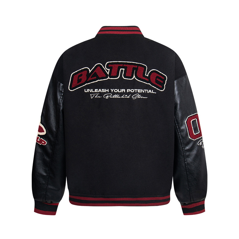 Unisex Color-Block PU Leather Sleeve Varsity Jacket – Loose Fit